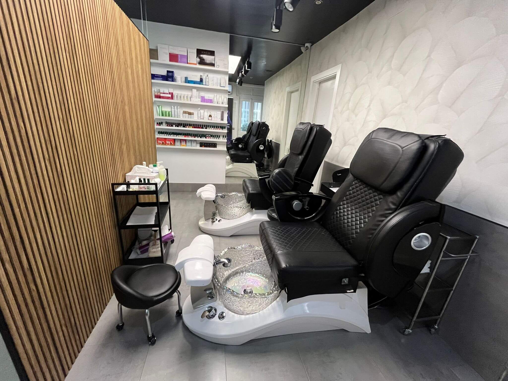 Disponemos de dos salones ideales para servicios de manicuras y pedicuras, uno de ellos más reservado para personas que necesitan cierta intimidad y otro más amplio y espacioso, ambos salones con sillones de pediluvio reclinables que ofrecen máximo confort.
